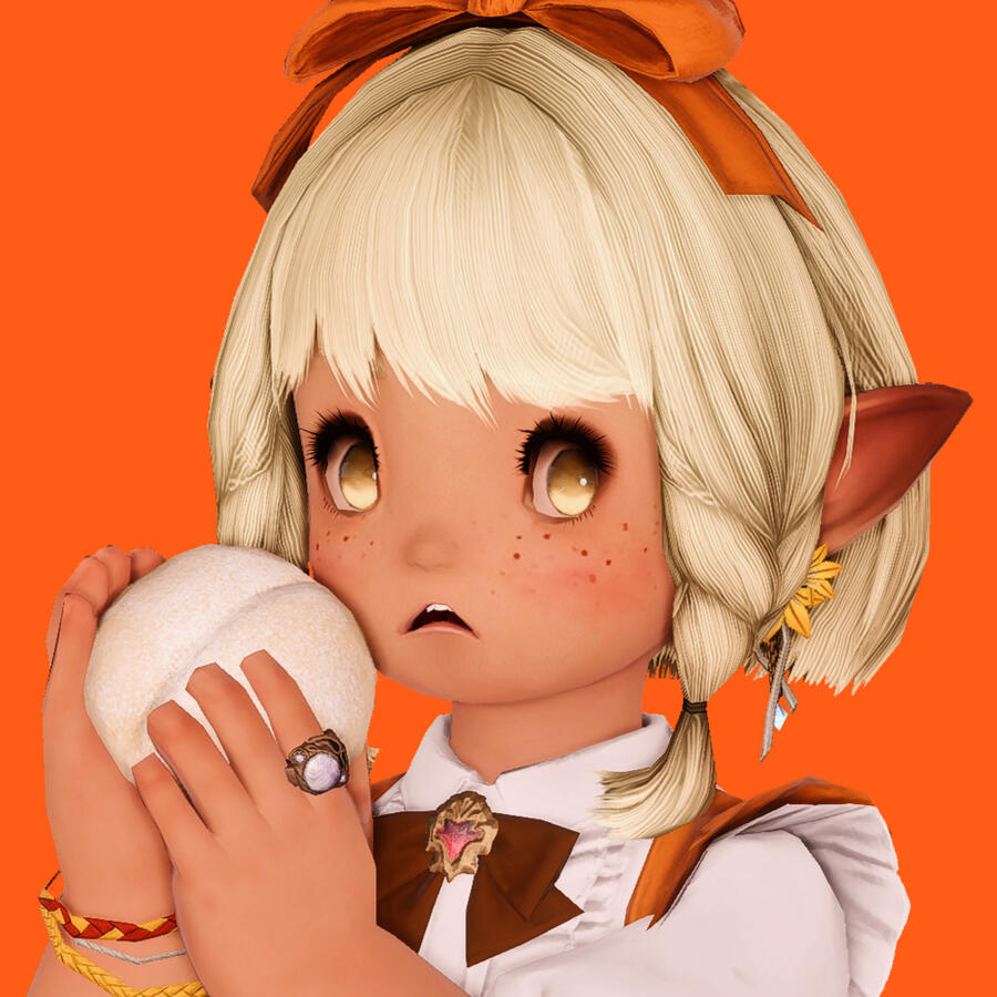 Local Lalafell with a tendency to not mind her business. If you catch her looking at you she's probably wondering what food you ordered so she can eat the same thing later. Babycorn eats a lot of things she shouldn't and that's caused a lot of problems. Puts the "haunted" in "haunted FC chambers". Pat at your own risk!
